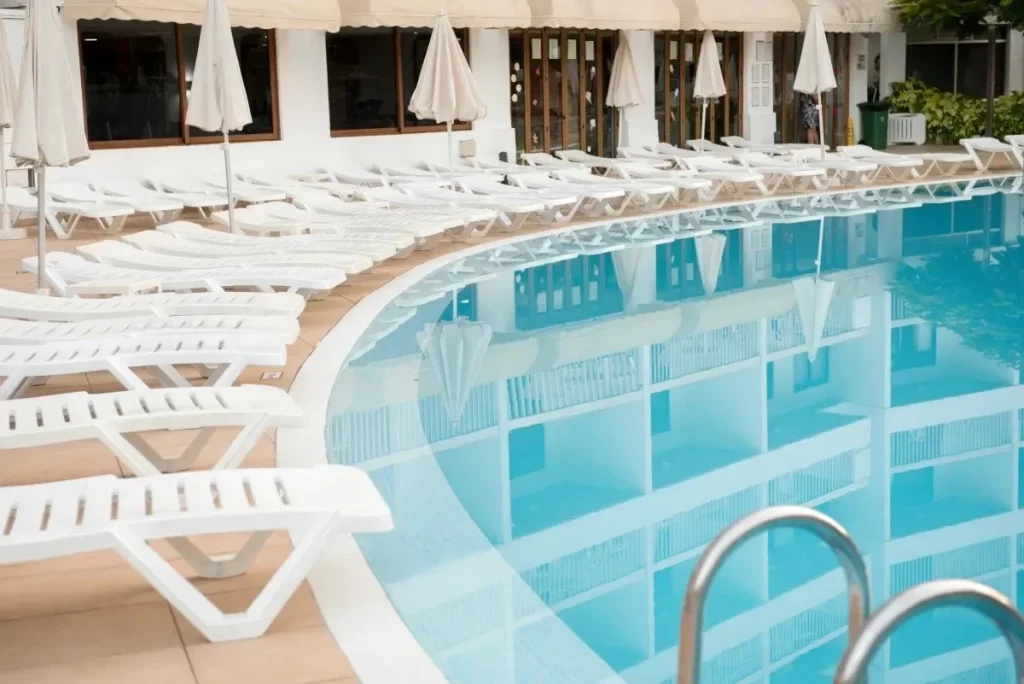 The complex has two swimming pools, one for adults and one for children, surrounded by sun and shade areas that create an ideal environment for relaxation.